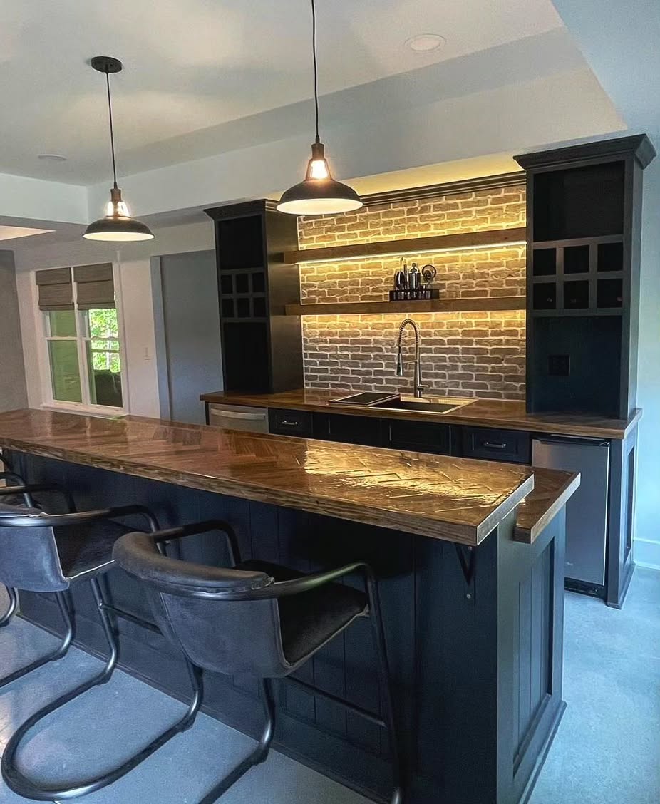 In addition to their design prowess, New Edge also brings a strong focus on quality execution. From custom cabinetry and millwork to lighting, plumbing, and finish details, their work reflects careful attention to each element of construction, ensuring that the final bar is durable, visually striking, and tailored to everyday use.