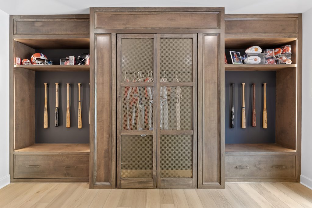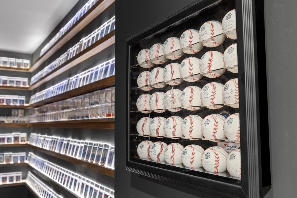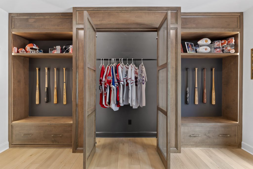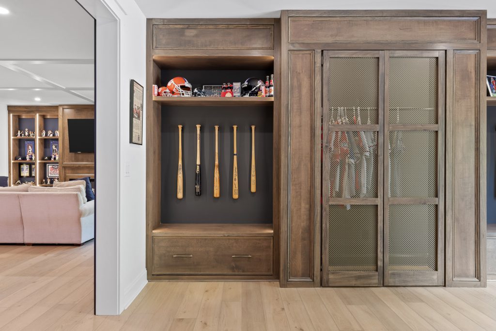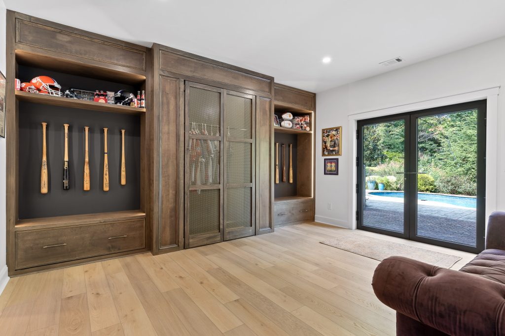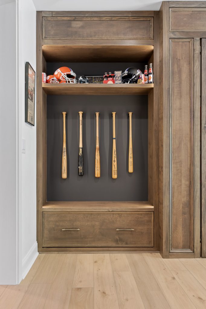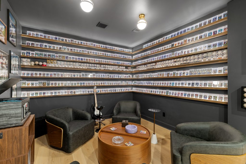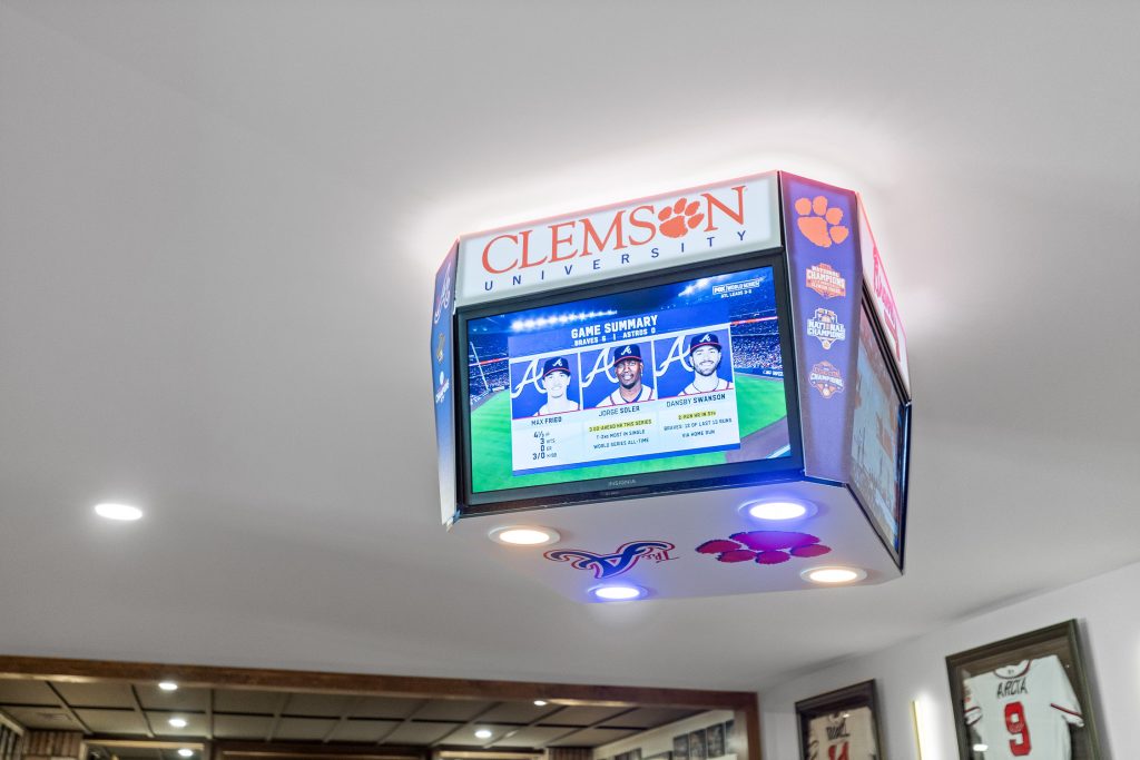 From the moment you step downstairs, the space makes its intentions clear: this basement was designed for fans. A cohesive sports theme pays homage to the hometown heroes, the Atlanta Braves, without tipping into gimmicky territory. Instead, subtle team colors, premium finishes, framed memorabilia, and accent lighting create a polished, upscale environment that still delivers plenty of game-day energy.