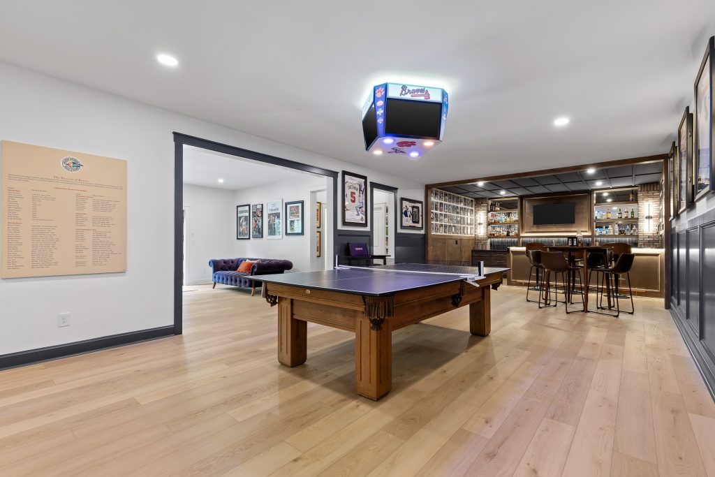 Atlanta homes often have untapped basement potential, and this project shows how powerful a custom basement finish can be when it’s tailored to your lifestyle. Instead of a generic layout, this space reflects the homeowner’s passions—sports, entertaining, and interactive recreation—while adding serious long-term value to the home.
