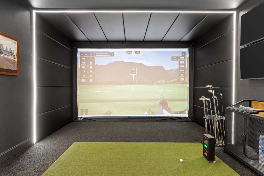 For golf enthusiasts, this basement includes a state-of-the-art golf simulator, allowing you to tee off without ever leaving home. Designed with proper ceiling height, impact-rated screens, and immersive visuals, the simulator delivers: