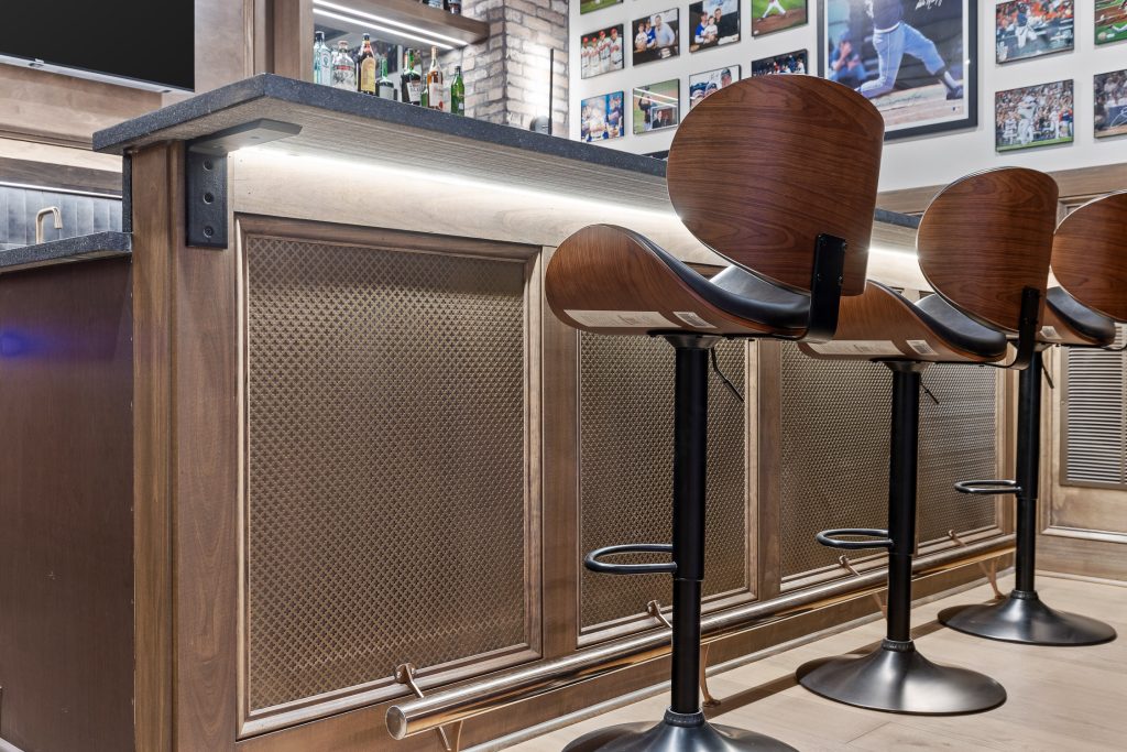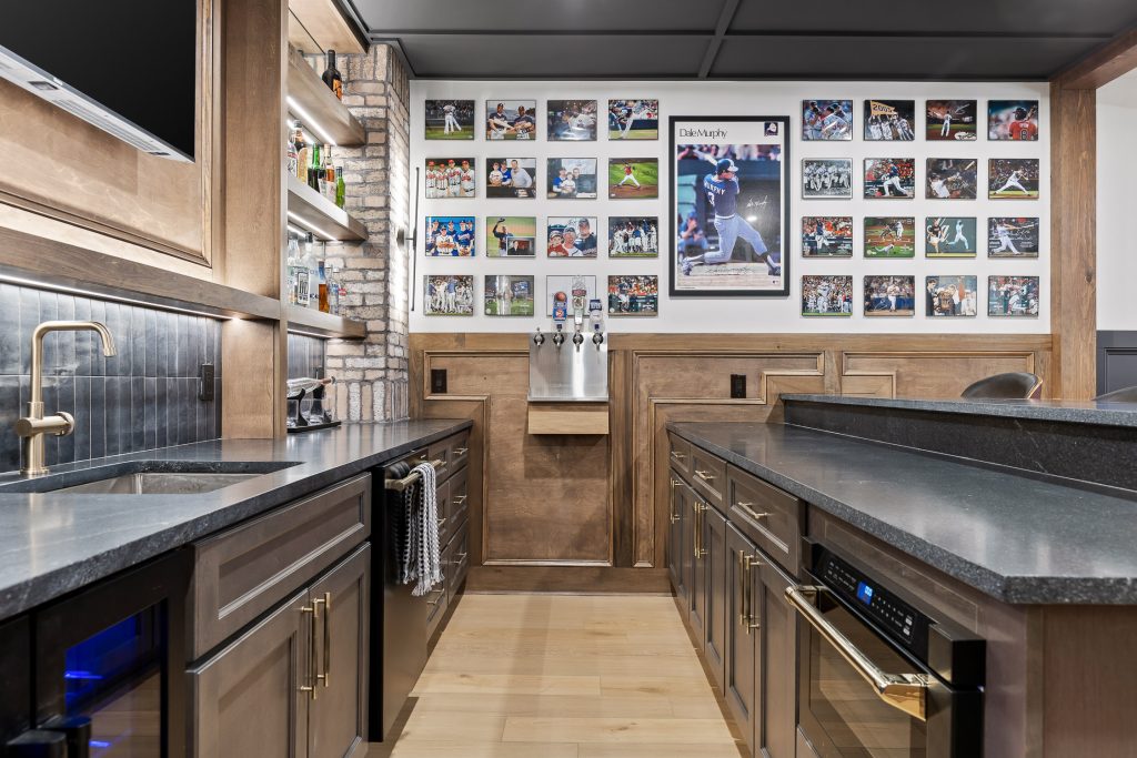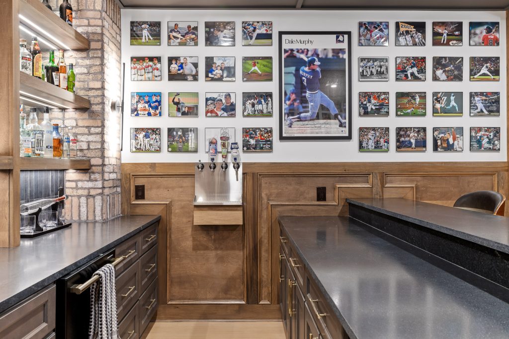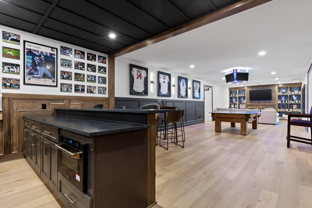 Whether you’re hosting a watch party, mixing drinks after a round of pool, or entertaining friends during a big Braves series, the bar anchors the entire basement experience.